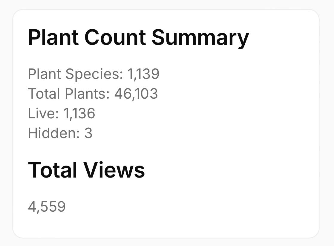 Free Up Your Team’s TimeWith an online stock list, you’ll spend less time answering “Do you have…” phone calls and more time looking after your plants and customers.Build Trust with Accurate InformationA live, reliable plant list shows your customers you’re organised, transparent and easy to buy from. It’s a simple way to look more professional online.Easily Adapt to Seasonal ChangesWhether you’re restocking for spring or selling out of a popular plant, update your listings in seconds no need to touch a website or call a web developer.Everything in One PlaceDitch the paperwork and scattered spreadsheets. Use one clean dashboard to manage your nursery stock and stay in control.Start Sharing Your Plant ListNo more tech headaches. No more guesswork. Just a smarter, simpler way to manage and share what you grow on social media like Facebook, X (Twitter), Instagram, your website, email marketing lists, whatever method you choose you can easily share instantly with a simple link.Skip the Plant Template, Grow Smarter