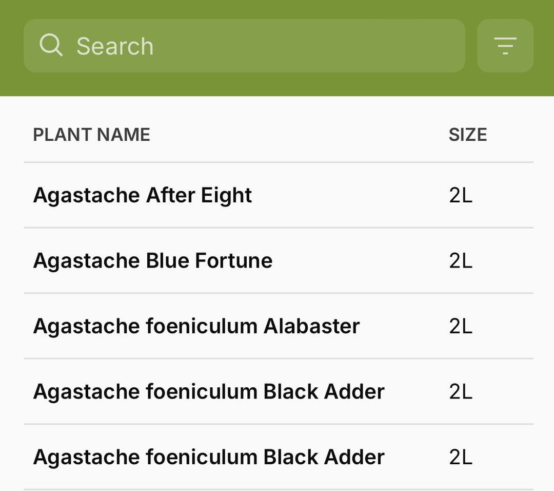 Your customers will experience an unrivalled service as they browse easily through your plant list.No more browsing for or downloading files or PDF’sWith an easy to use search and filter they can quickly find the plants they are looking for.